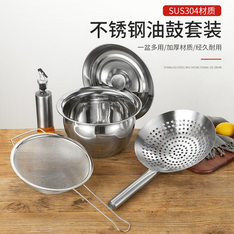Extra thick 304 oil drum 9 inches without cover Extra thick 304 oil drum 10 inches without cover extra thick 304 oil drum 11 inches without cover extra thick 304 oil drum 9 inches with cover Extra thick 304 oil drum 10 inches with cover
