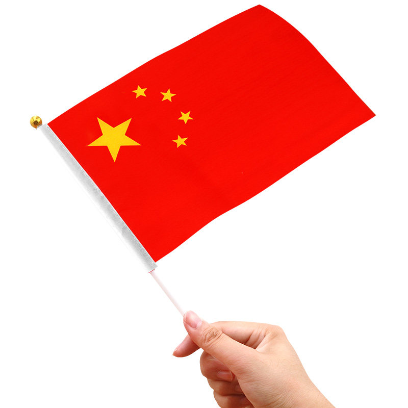 Hand-cranked small national flag Holding a small red flag National Day hand-waved flag custom decoration flag with pole trumpet small flag