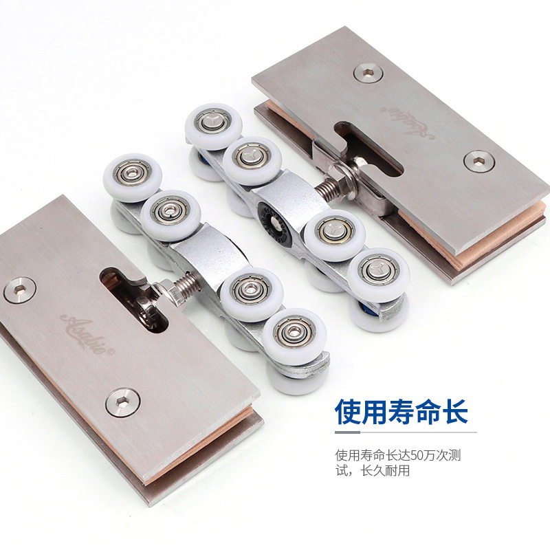 Sliding door hanging wheel hanging clip glass door stainless steel pulley sliding door accessories bathroom clip sliding door wheel frameless glass
