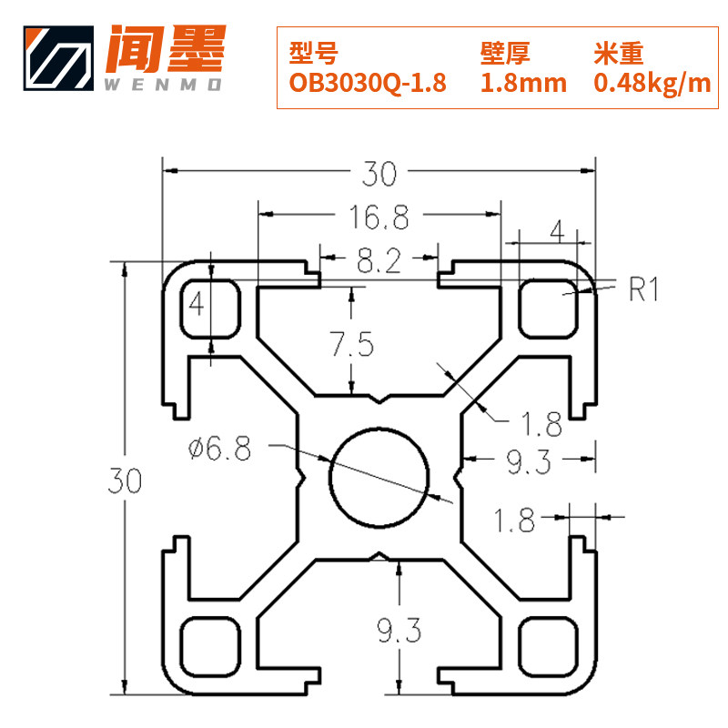 Aluminium extrusion material UEFA 3030Q-1 8 wall thickness machine frame fish tank rack holder bench 3030 aluminium square tube