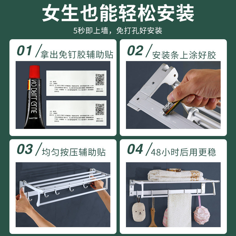 Towel Rack Space Aluminum Bathroom shelf Double-lever Makeup Room Perforated Wall-mounted Bathroom Hardware Pendant Suit