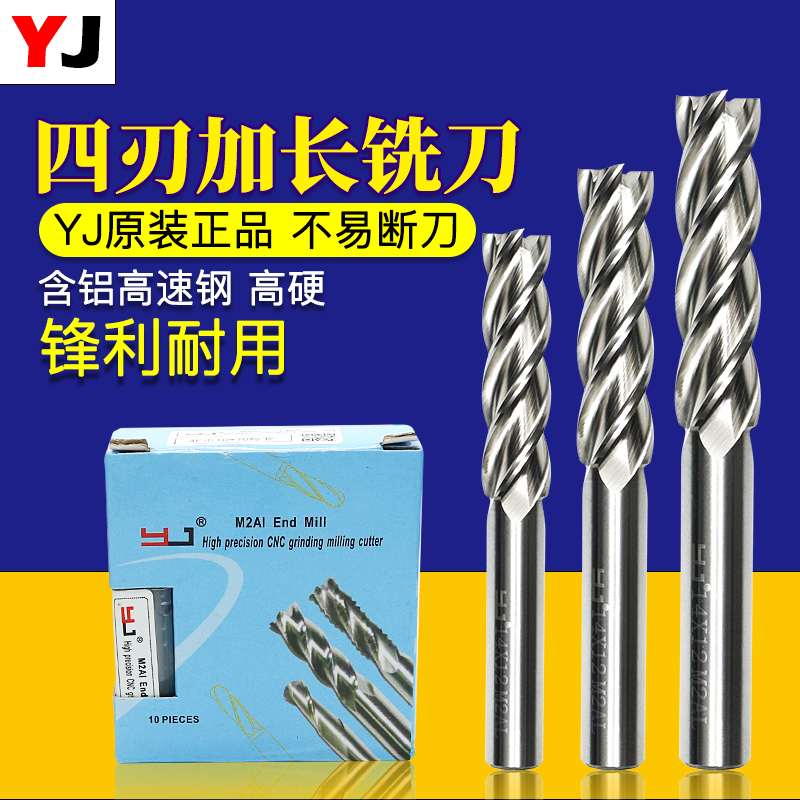 YJ white steel milling cutter four-edge lengthened vertical milling cutter all-grinding over center M2AI high speed mesh gong knife washing knife 4 blades special length