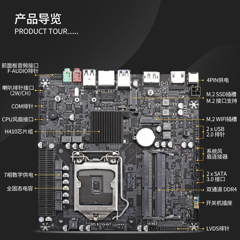 The Anda H410D4 IPCmini desktop computer in one mini ITX motherboard compatible with Core Ten Generation LGA1200 needle set dual channel ddr4 support m 2 hard