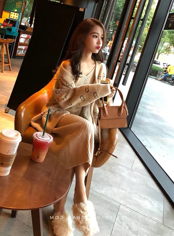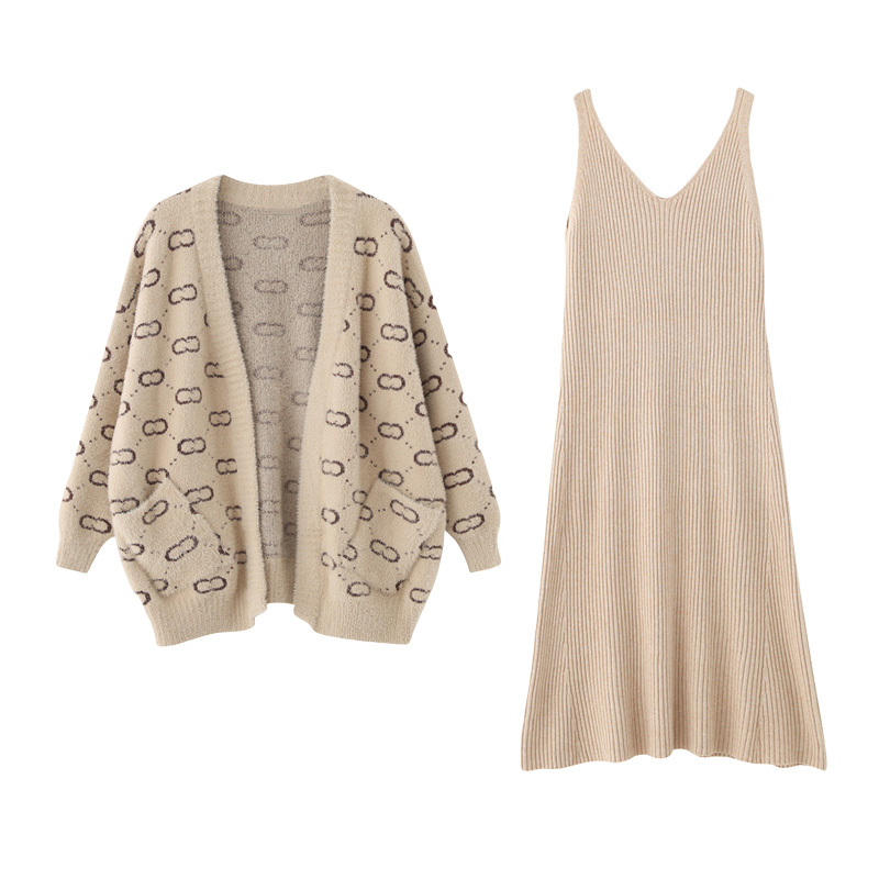 Cardigan Slip dress One-piece knitted cardigan sweater One-piece slip dress