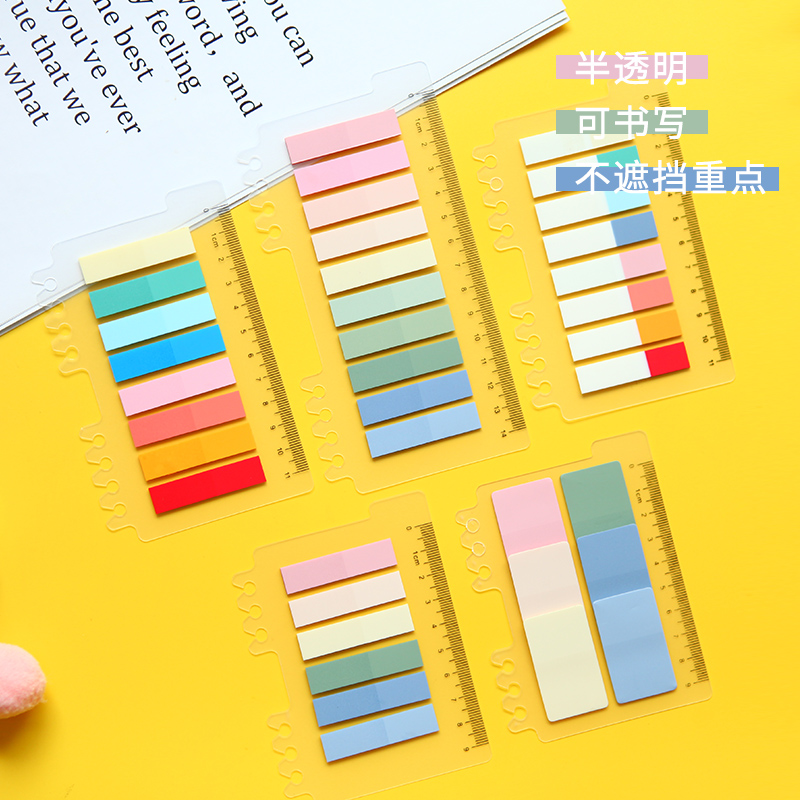 Morandi label index sticker indicating sticker PET plastic transparent colored convenience sticker convenience sticker strip small strip convenience stickler for students with adhesive creative minima cute cartoon girl's heart