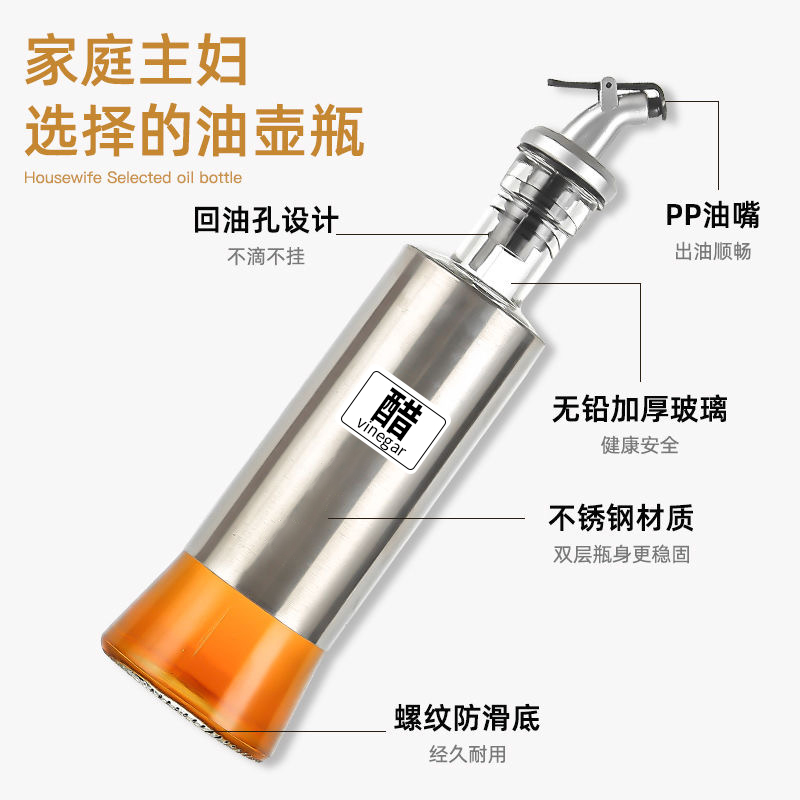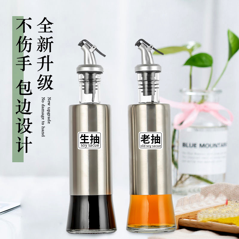 Home Stainless Steel Oil Jug Glass Oil Bottle Anti-Leak Seal Seasoned Bottled Oil Sauce Vinegar Bottle Seasoned Bottle