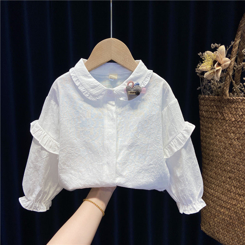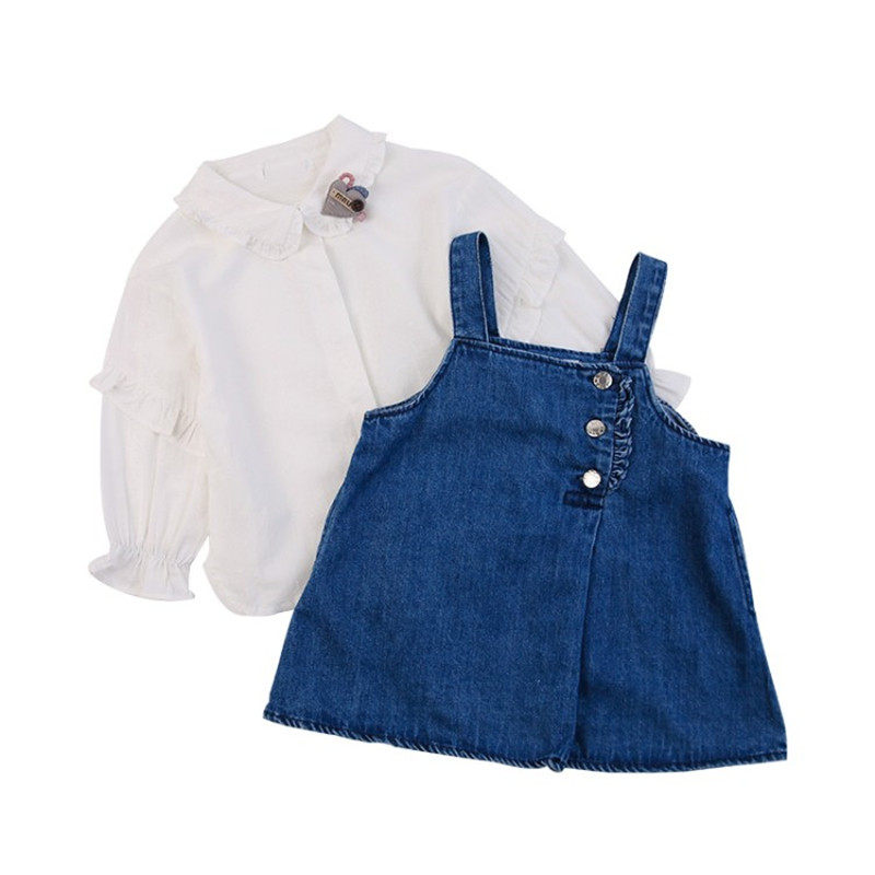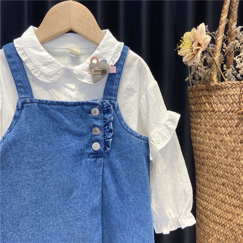 Girls' suspender skirt suit children's spring and autumn foreign style fashionable white shirt baby denim skirt two-piece set 1 year old 2