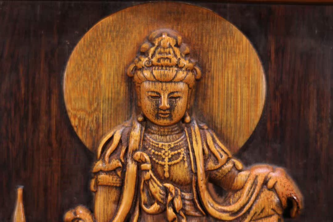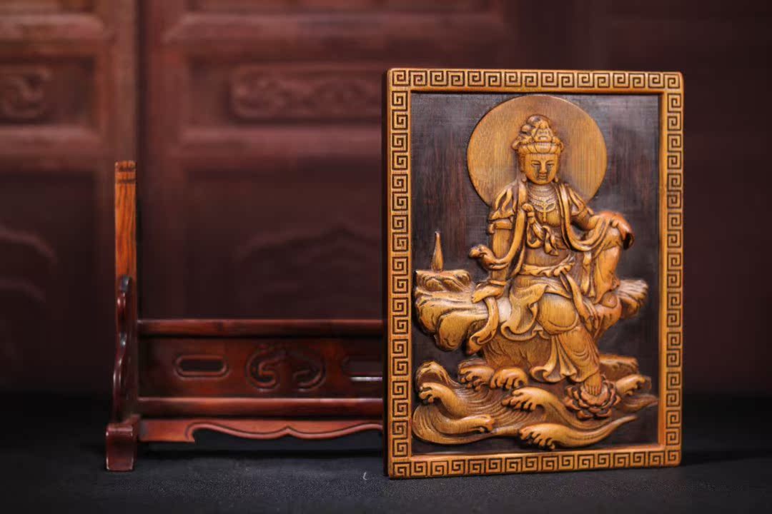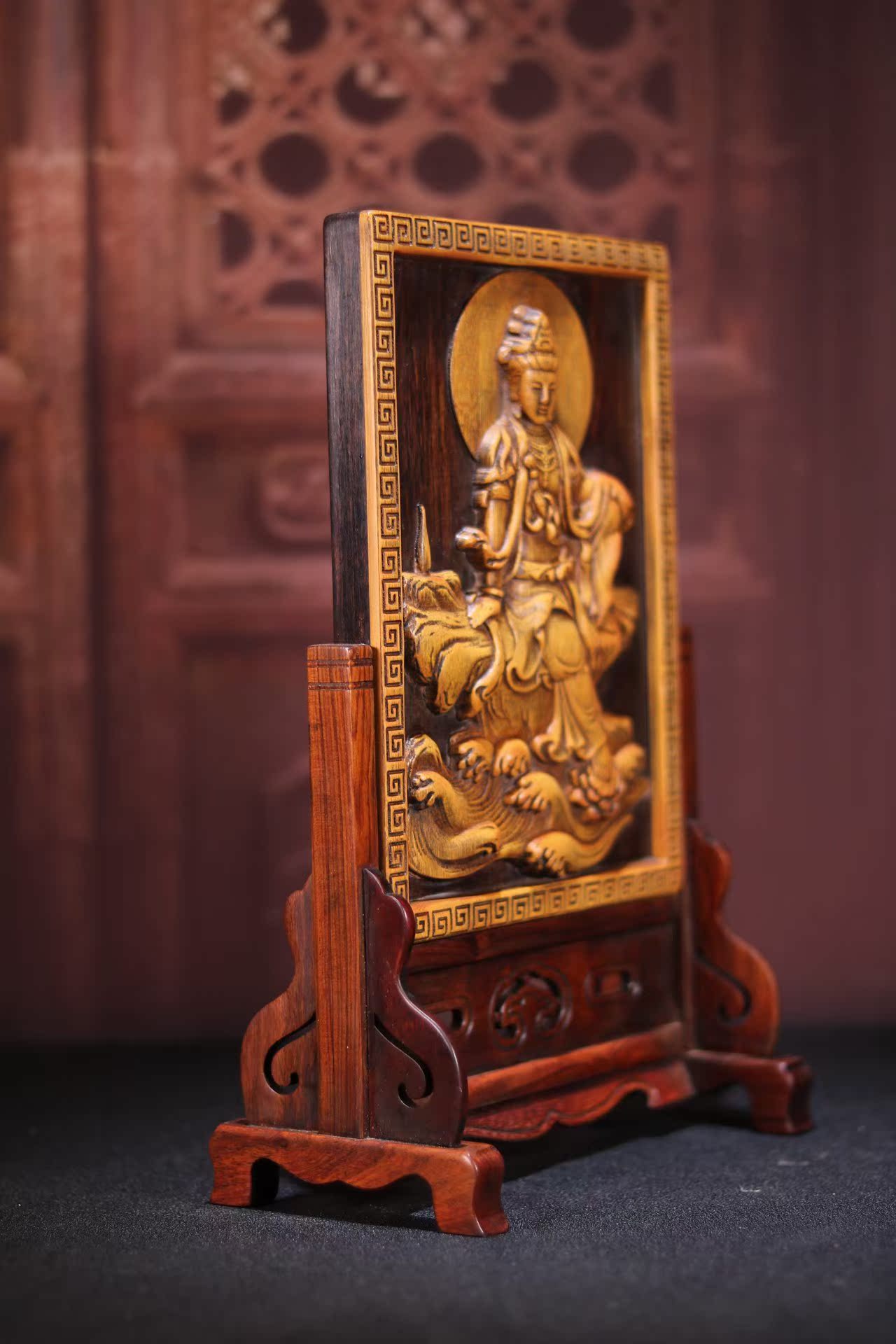 Ancient Play Miscellaneous Collection Wooden Ware Collection of Treasured Pear Wood Sticker Bamboo Spring Guanyin Bodhisattva Screen