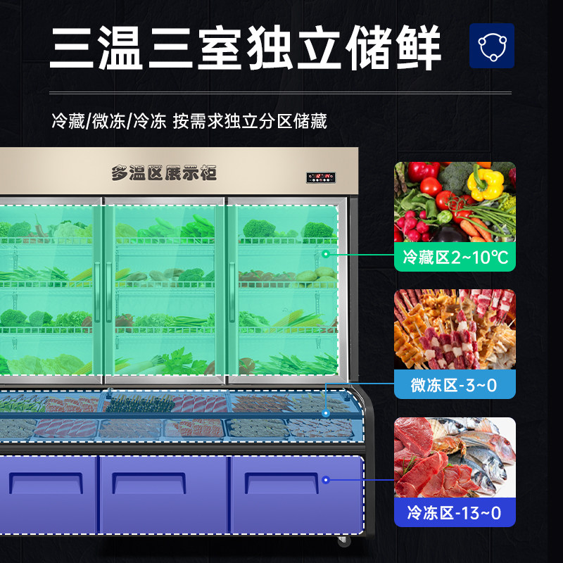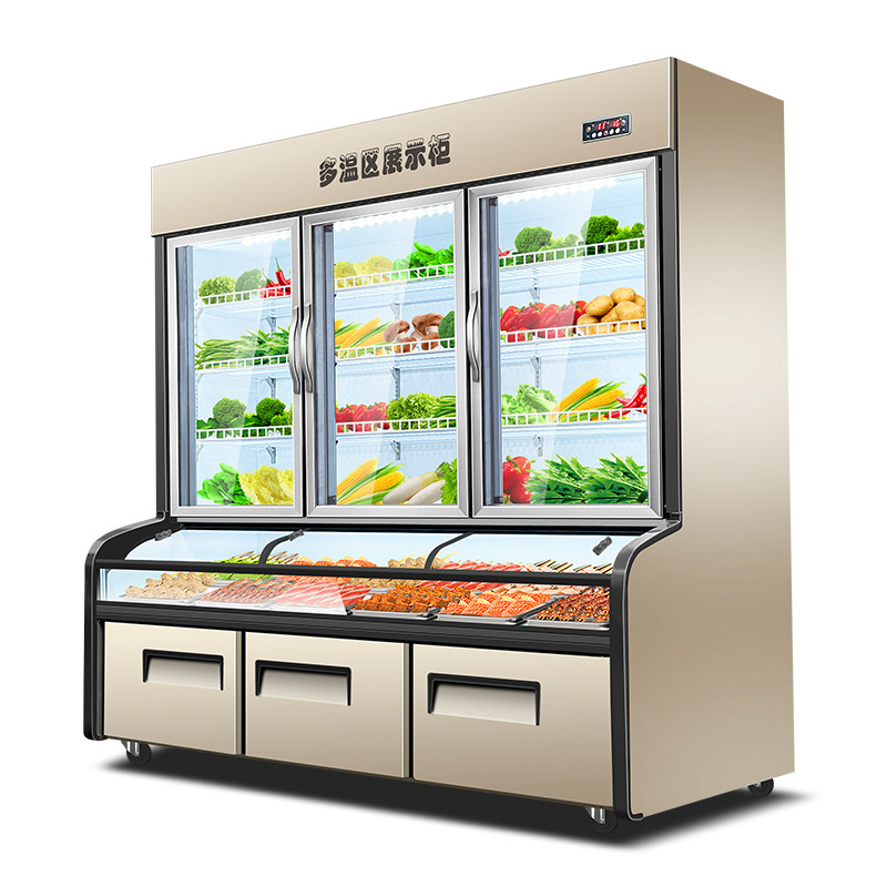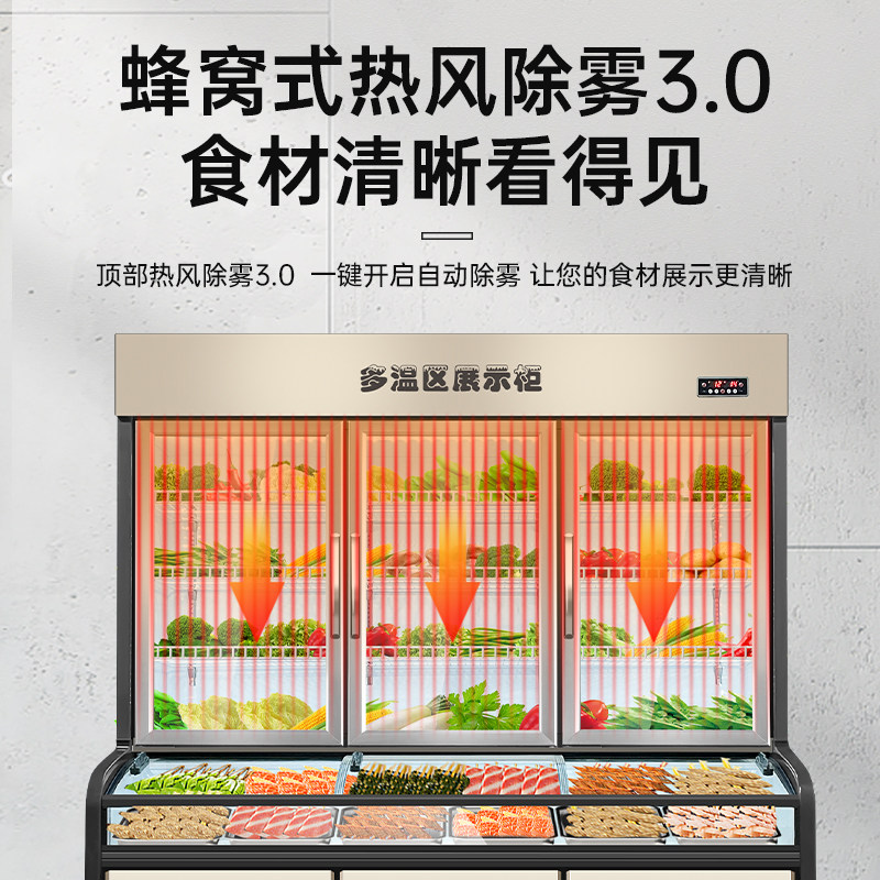 Nine Yiji 3-room ordering cabinet refrigerated commercial freshroom cabinet barbecue hot hot freezer display cabinet