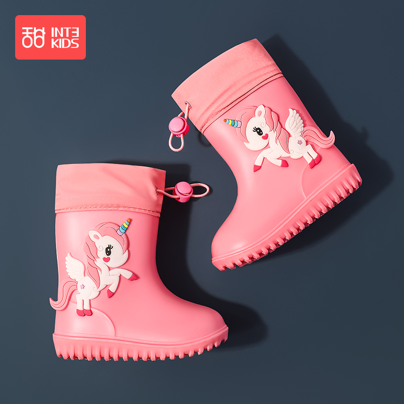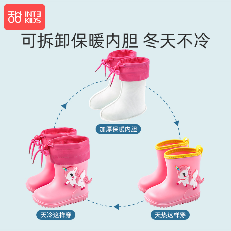 Children's rain boots baby non-slip rain boots girls water boots children toddler boys waterproof rubber shoes children plus velvet water shoes