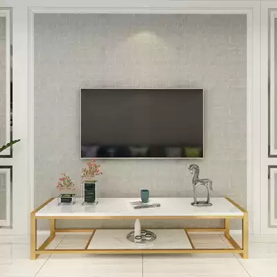 Simple wrought iron TV cabinet coffee table combination light luxury marble TV cabinet modern simple Nordic small apartment