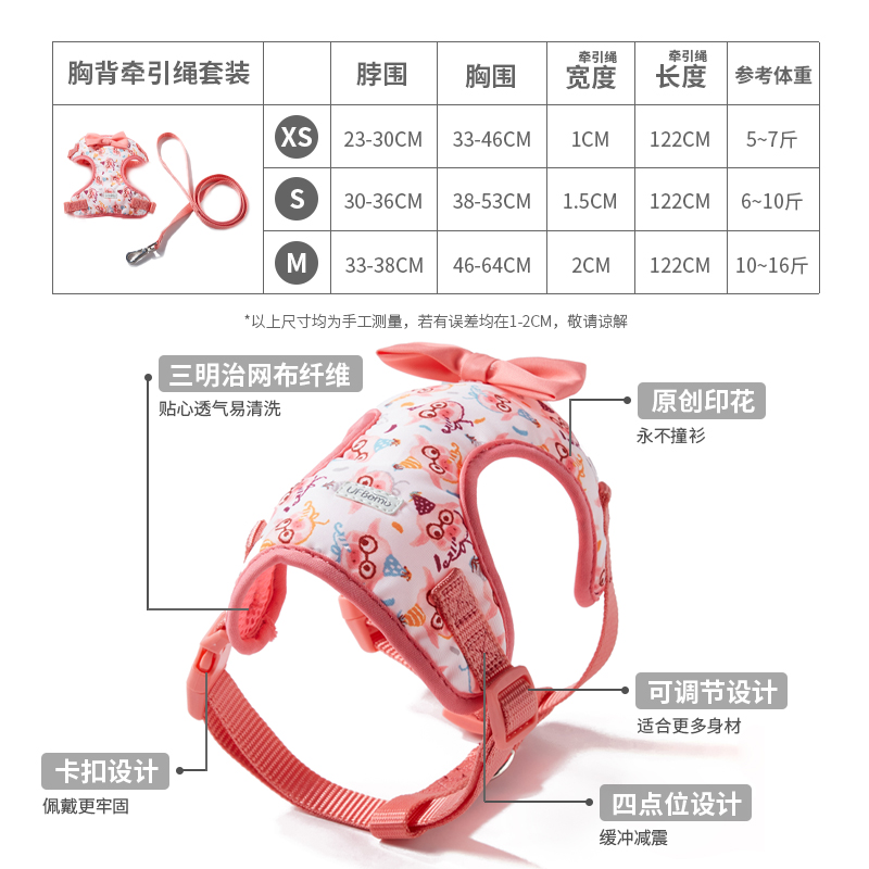 UFBemo kittens traction rope vest-type small and medium dog Puppy baby bag spring puppies Cat Rope Anti-Escape
