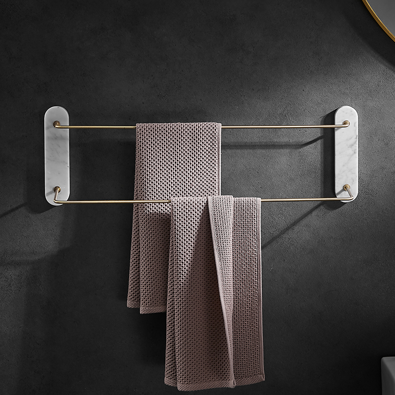 Lightweight Marble Bathroom Towel Rack Dressing Room Double Rod Full Copper Brushed Gold Towel Rod Wall Mount Single Rod
