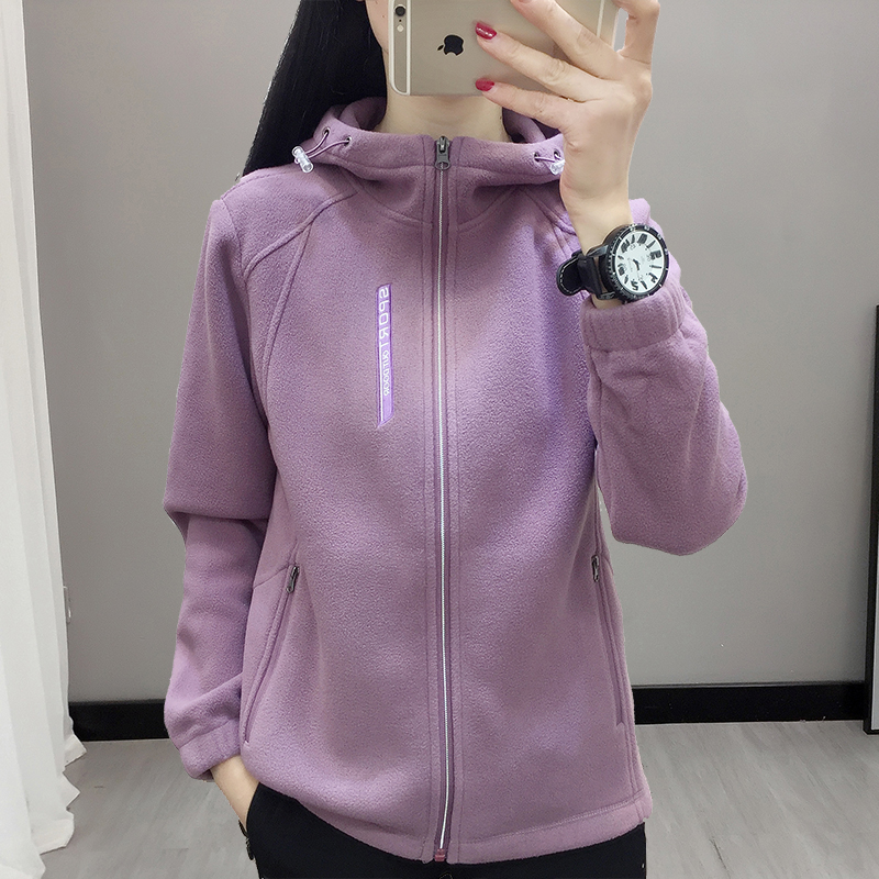 Hooded fleece women's autumn and winter windshield warm hoodie outdoor sports mountaineering suit jacket cardigan breathable inner