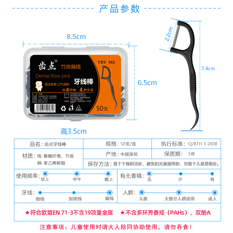 Tooth point bamboo charcoal dental floss family pack ultra-fine flat wire portable carry-on bow toothpick boxed dental floss stick 50 X5 boxes