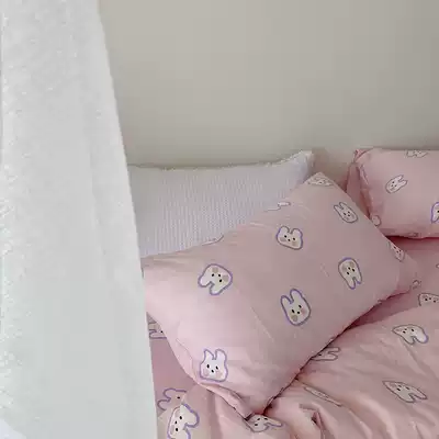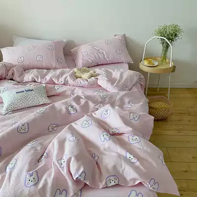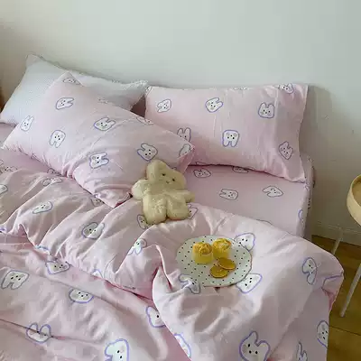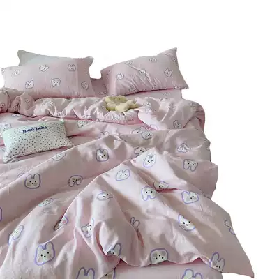 (Toyama strawberry)Class A baby grade double gauze four-piece cotton cartoon children's rabbit bed sheet