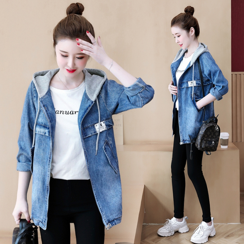 Tide Card Big Size Women's Dress 2022 Autumn Winter New Denim with hat jacket Fat younger sister's mid-length version of a skinny blouse