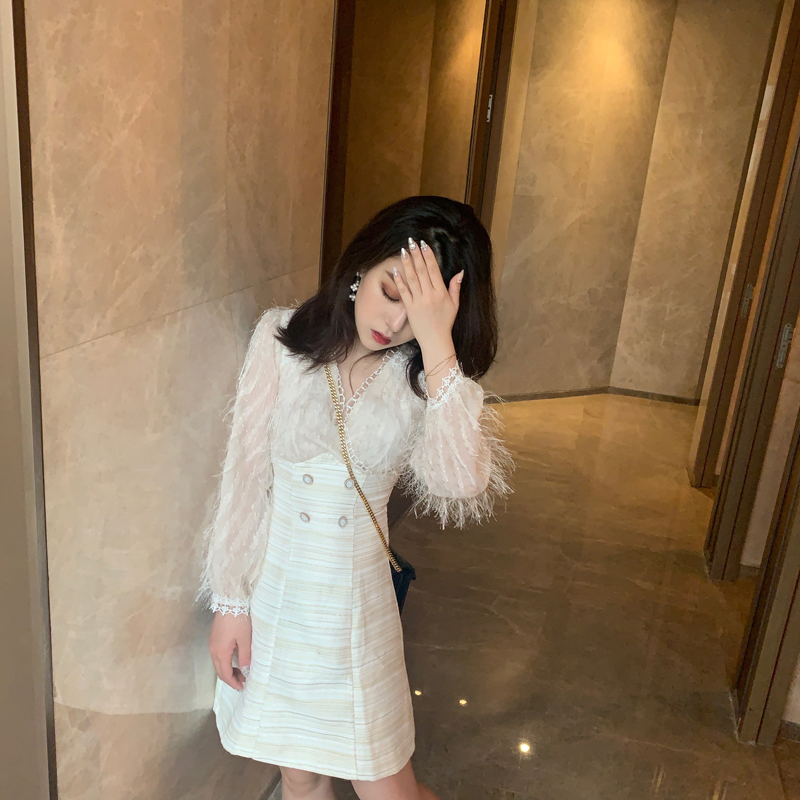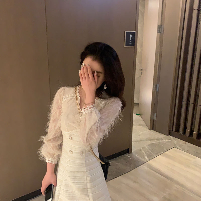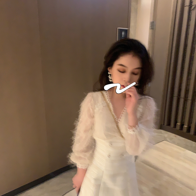 Spring clothes 2021 The new temperament is small and fragrant name Yuanyuan Elegant Dress Woman Spring Autumn High End Big Card Long Sleeve White Dress