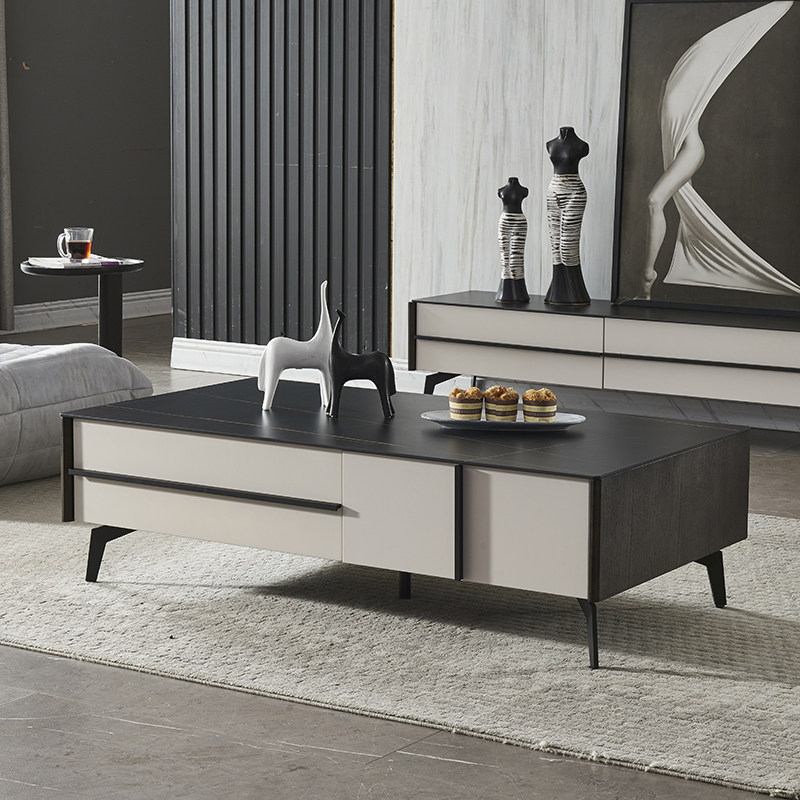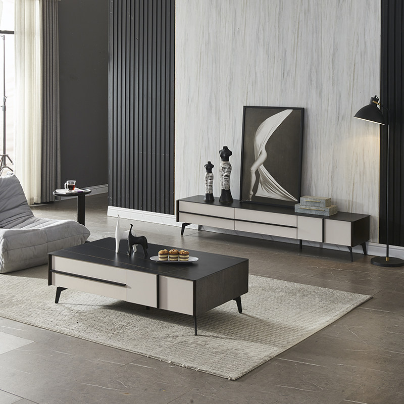 Slate coffee table TV cabinet combination Italian gray light luxury simple living room sofa marble complete furniture set