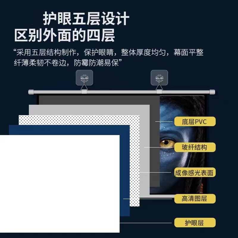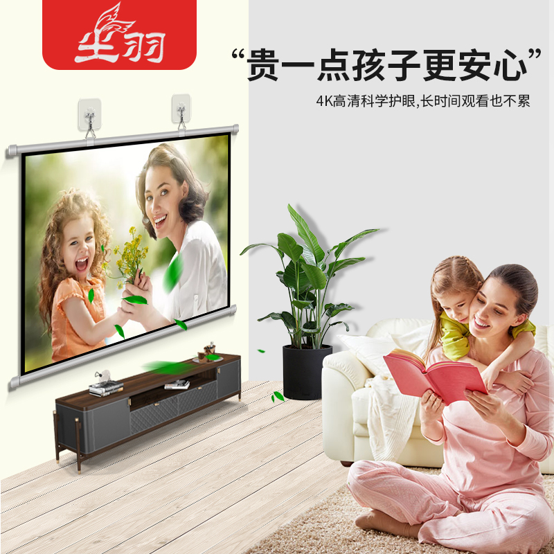 Dust feather projection screen free punching wall hanging removable theater eye protection projection cloth curtain 60 inch 72 inch 84 inch 100 inch 16:9 simple portable 3D projection cloth wall sticker HD wall curtain