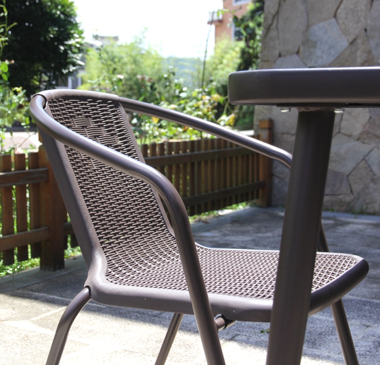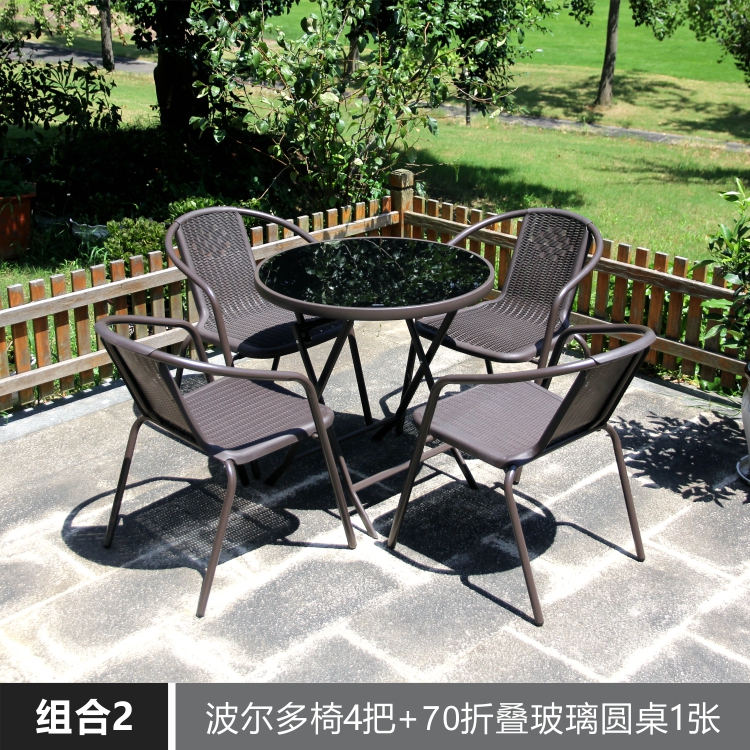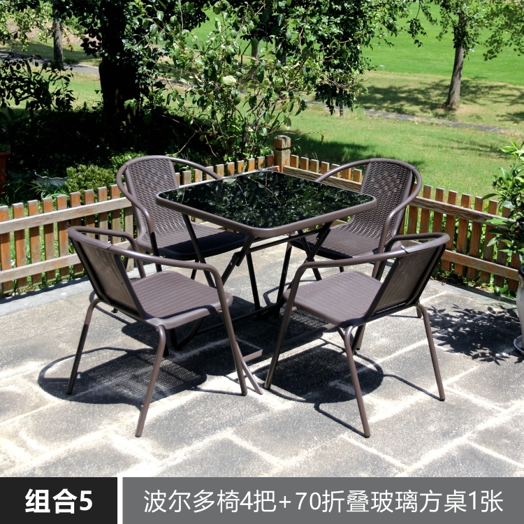 Outdoor leisure folding courtyard Garden Balcony Outdoor open-air Wrought iron imitation rattan chair Glass combination rattan woven rattan table and chair