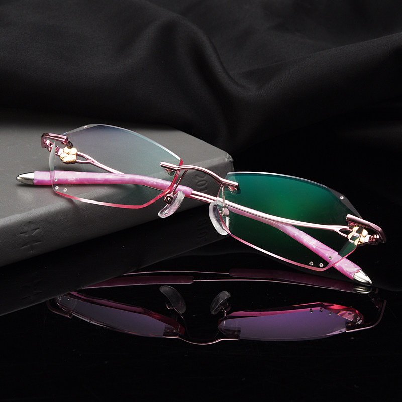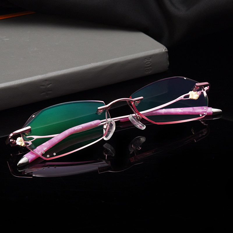 With rimless diamond trimmed myopia glasses women's anti-blue light finished astigmatism glasses frame power color changing glasses