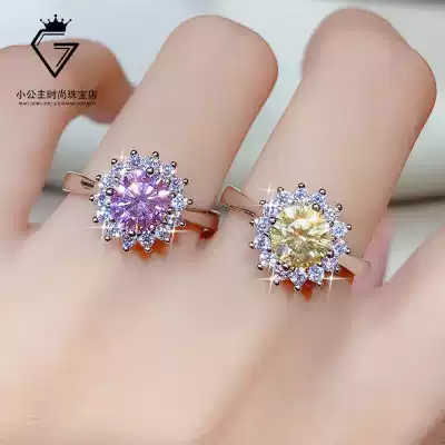 Moisan diamond ring female snowflake sunflower platinum pink diamond yellow diamond platinum for engagement ring Tanabata gift