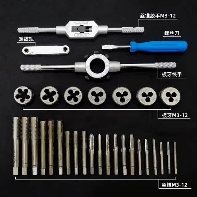32PC male-made screw tapping screw tap dental high-speed net 6542 wrench twisted glove loading hand with tapping repair stainless steel