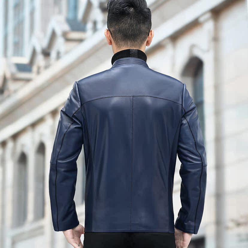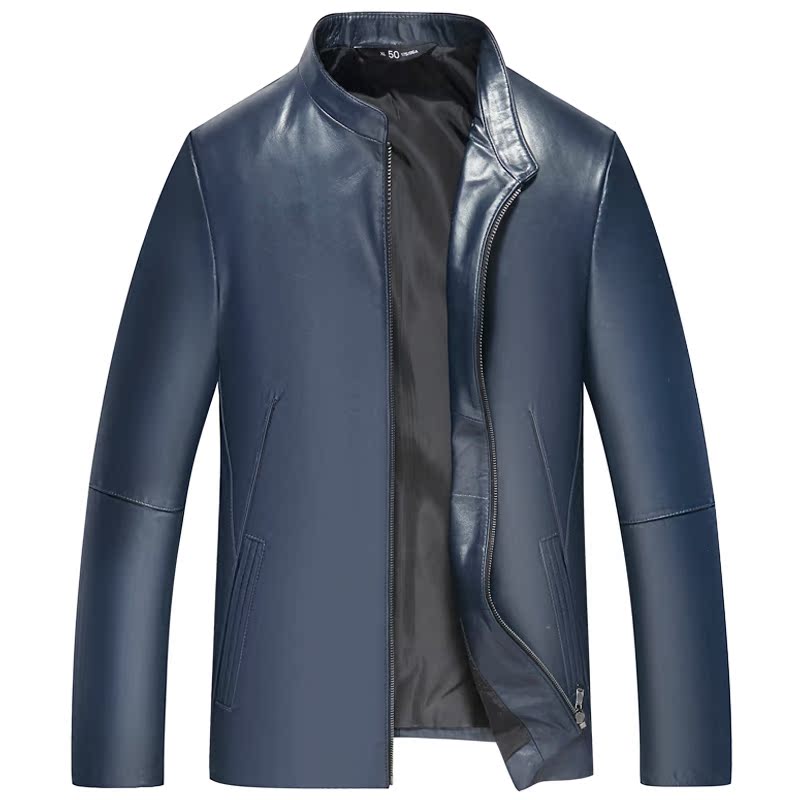 Haining leather leather men's sheepskin short motorcycle youth leather jacket stand collar slim casual thin coat tide