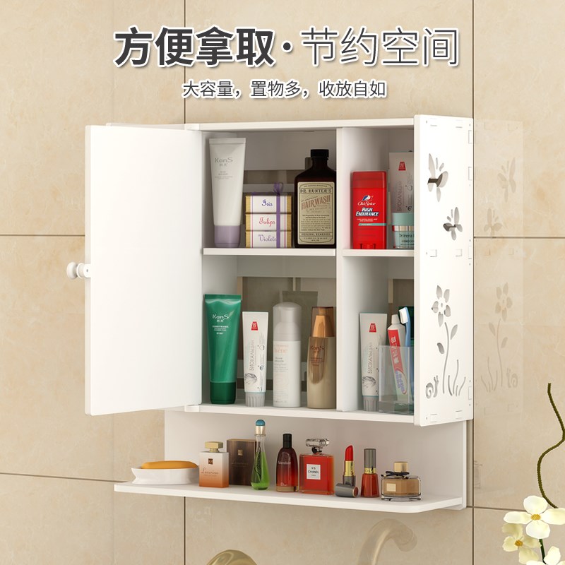 Makeup Room Bathroom Mirror Cabinet Hanging Wall Style Bathroom Wash Face Makeup Mirror Sub with shelve cabinet Integral free of punch