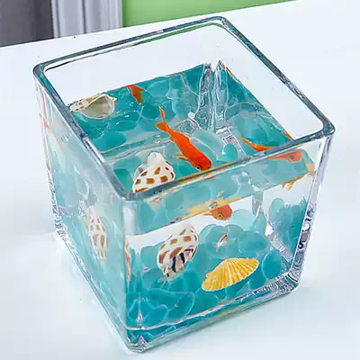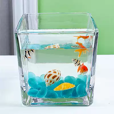 Small fish tank aquarium living room small desktop creative household crystal glass ecological mini goldfish tank Square