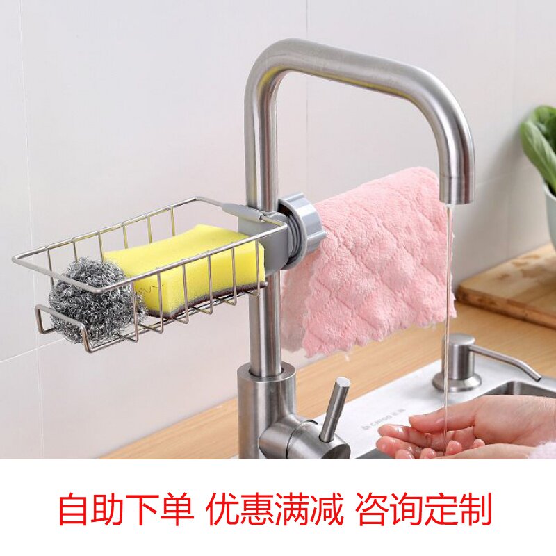 Tap Rack Stainless Steel Free Punch Kitchen Water Economy Sturdy Rag Sponge Drain Shelf Containing God