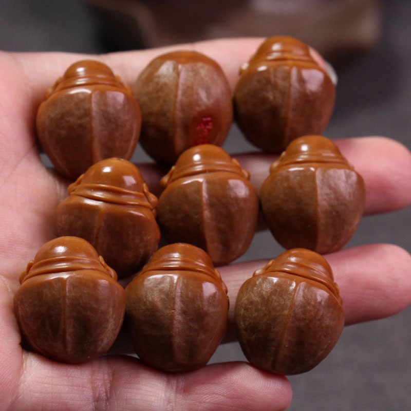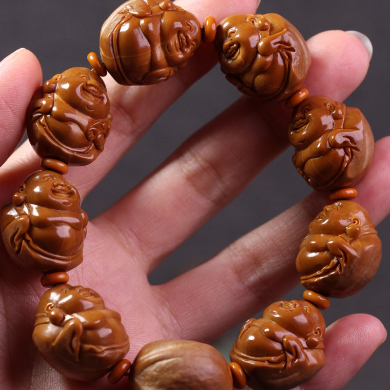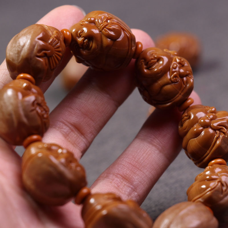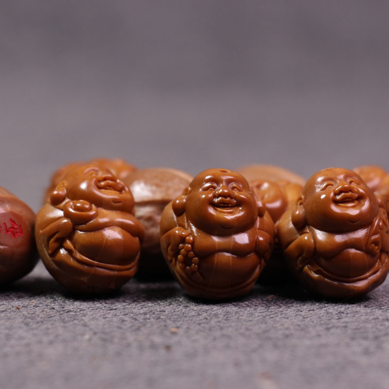 Su Gong Zhoushan olive core carving male and female hand string famous hand-carved Meilin iron core raw leather coated Maitreya Buddha