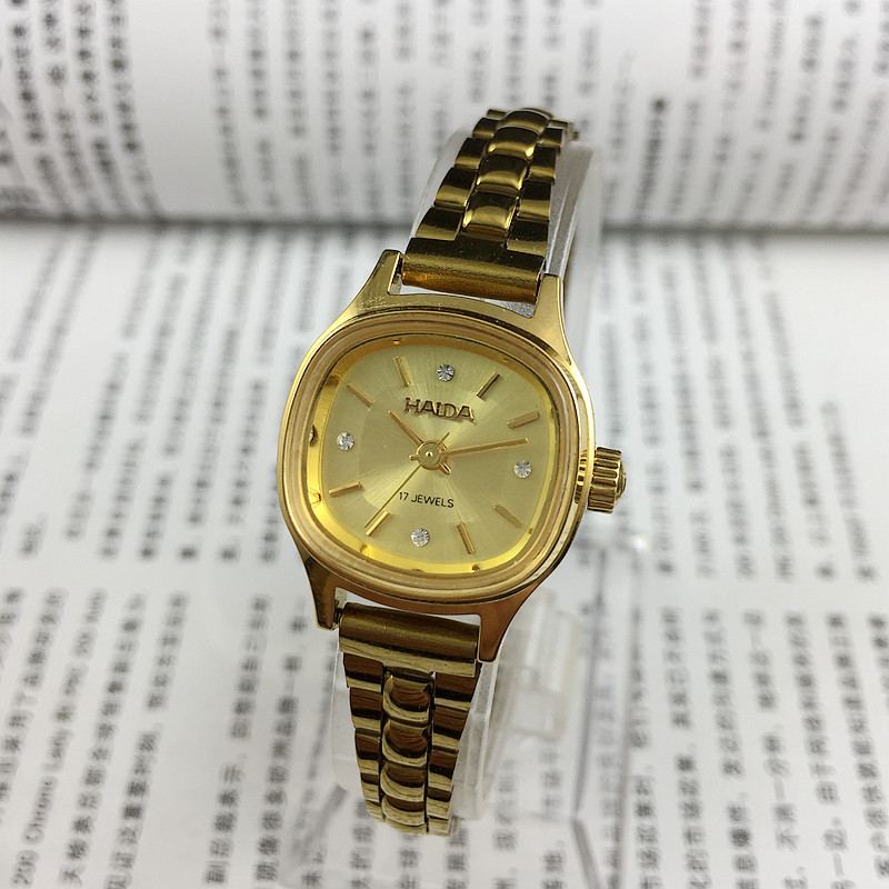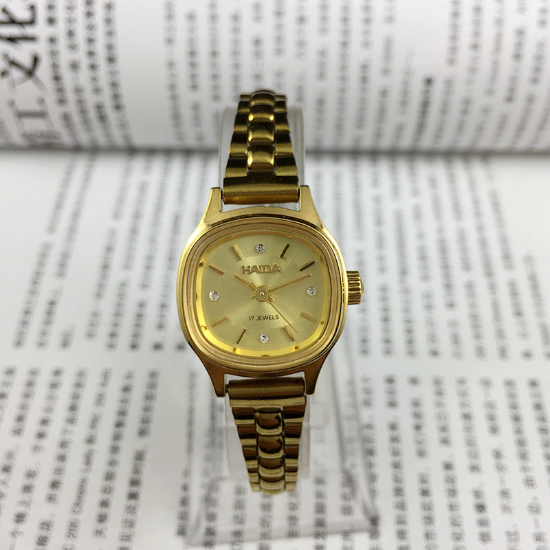 Original Inventory Shanghai Haida Brand Square Yellow Shell Strip Nail Yellow Face Ladies Mechanical Watch Diameter 24mm