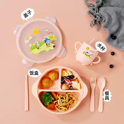 Baby dinner plate seal leak-proof school eating baby boy spoon set suction plate split box cartoon non-staple food bowl