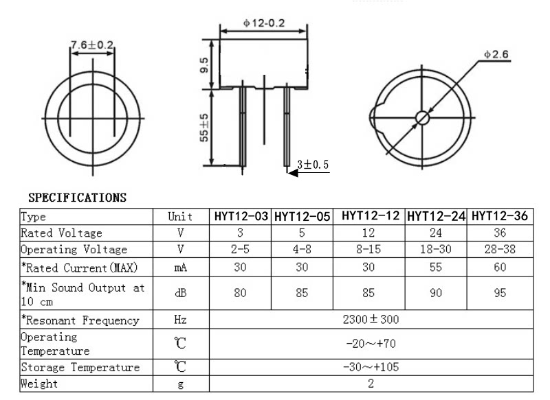 All-in-one with wire lead welding wire buzzer sound 95db 6V12V24V36V flasher buzzer