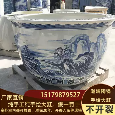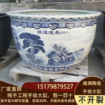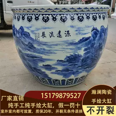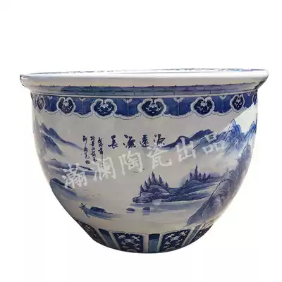 Jingdezhen blue and white ceramic fish tank 1m extra large water tank living room courtyard hand-painted landscape long history large tank ornaments