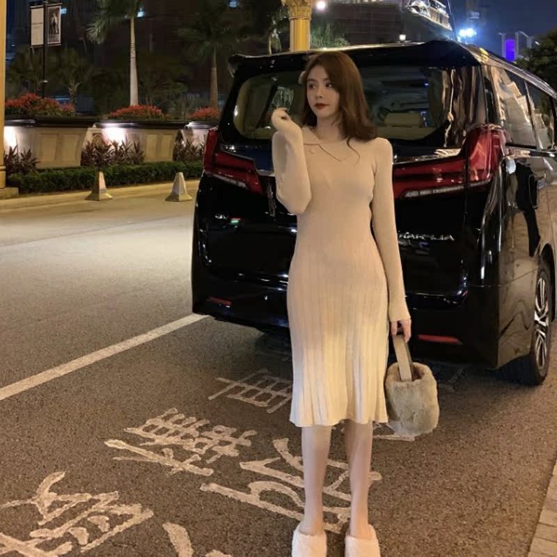 With coats, sweaters, skirts, women's mid-length, over-the-knee, temperament, waist, knitted skirts, women's autumn and winter dresses