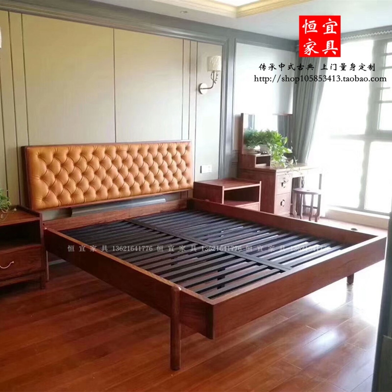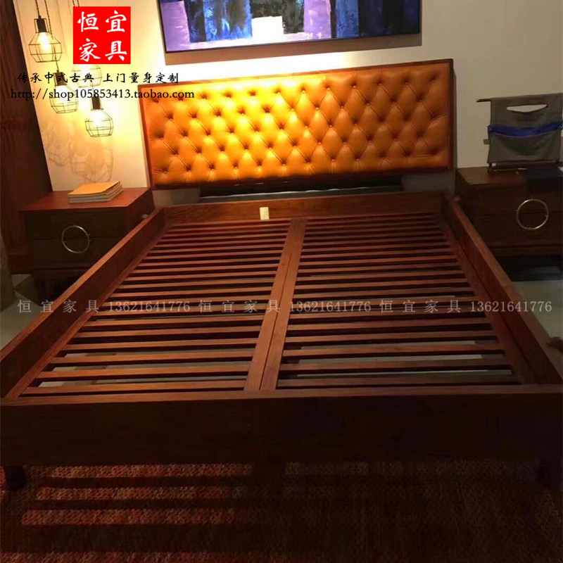 Hedgehog double bed solid wood furniture new Chinese red wood wedding bed flower pear wood orange 1 8 m bed
