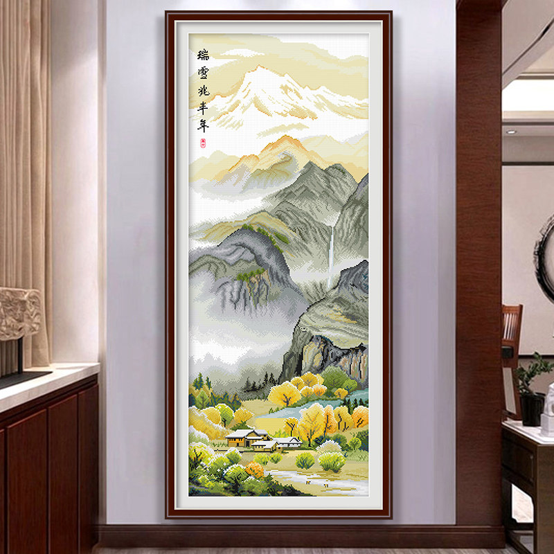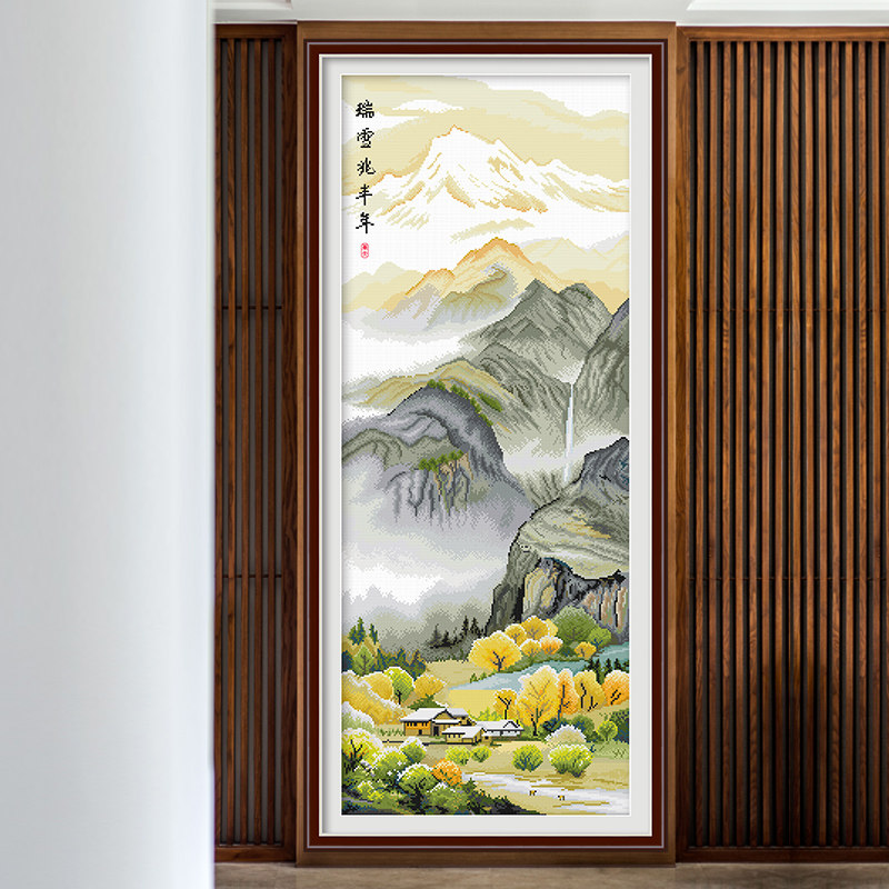 Cross embroidered 2022 new scenic landscape painting line embroidered vertical version living room Xuanguan sharply handmade herself embroidered new Chinese