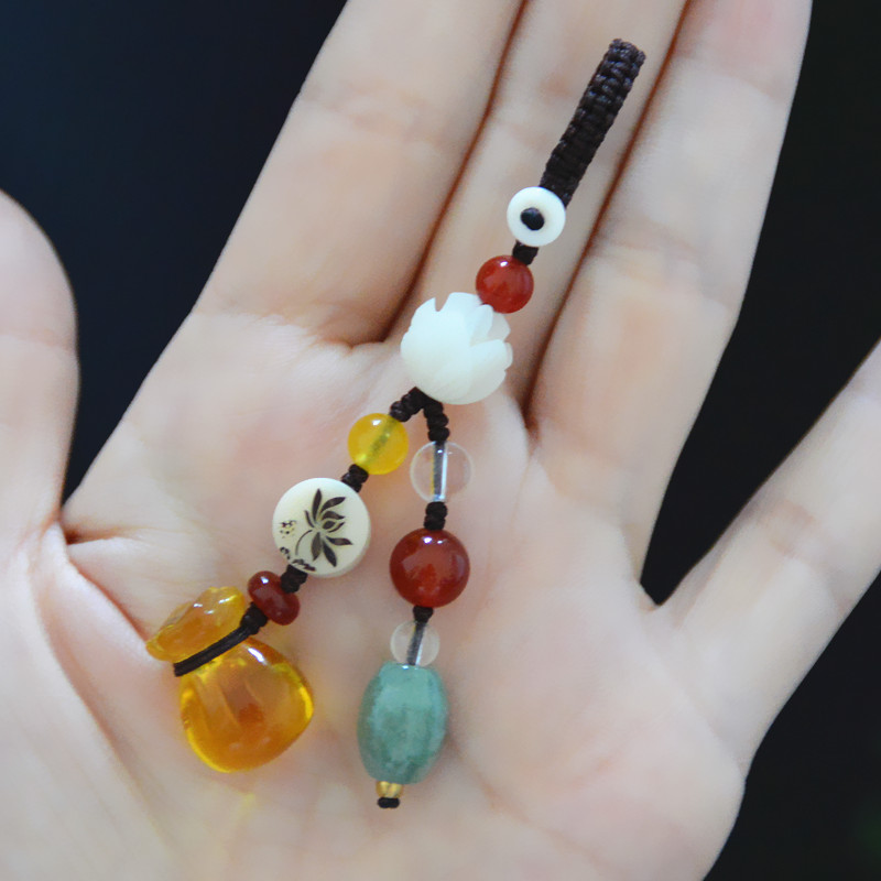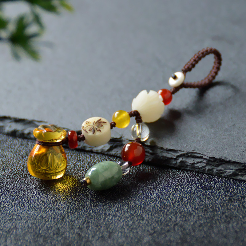 Natural citrine lucky money bag car key chain jade transfer beads men and women pendant pendant gift