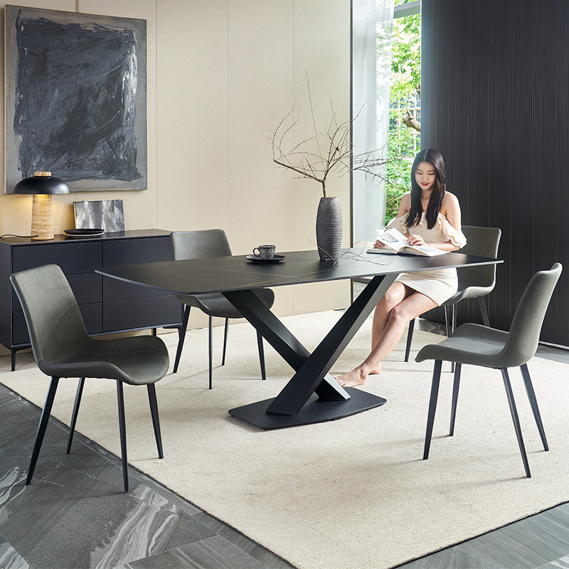 Nordic dining table and chairs Combined modern minimalist light lavish slab rectangular dining table Home marble table-Taobao