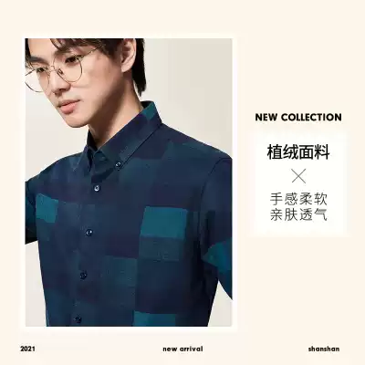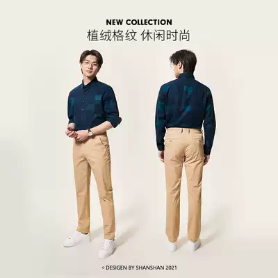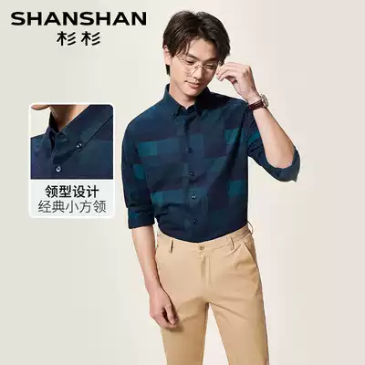 SHANSHAN SHANSHAN Men's 2021 Spring/Summer Flocking Scrub Plaid Long Sleeve Shirt
