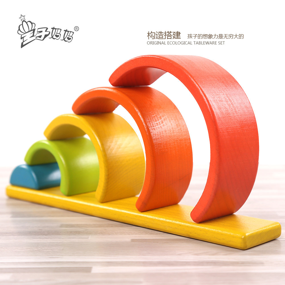 Solid wood beech large particles rainbow building blocks toy children's educational early education assembly to build boys and girls birthday gifts