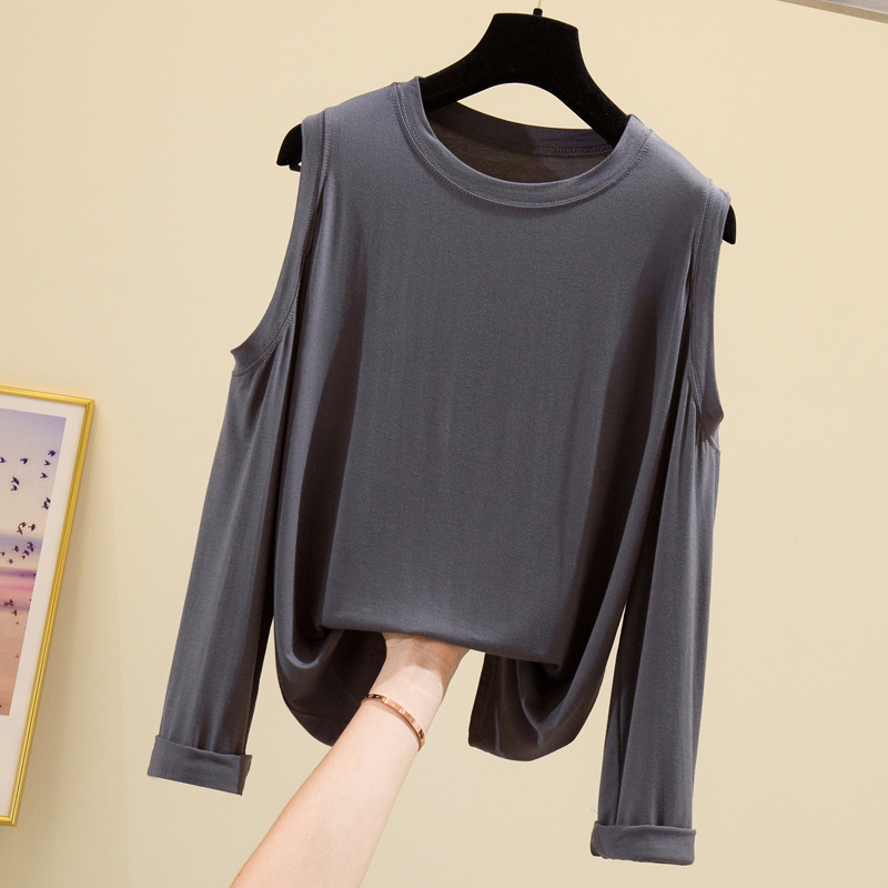 Modal long-sleeved T-shirt women's spring and autumn new round neck loose thin section off-shoulder top scheming design sense niche ins