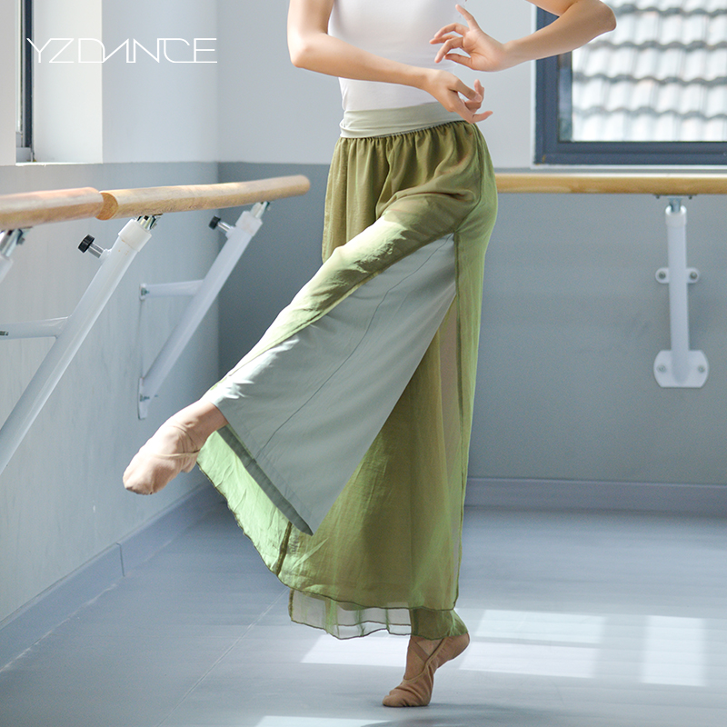 Yingzi classical dance training pants women's double-layer chiffon loose and elegant wide-leg pants Chinese dance training pants smoke wave pants