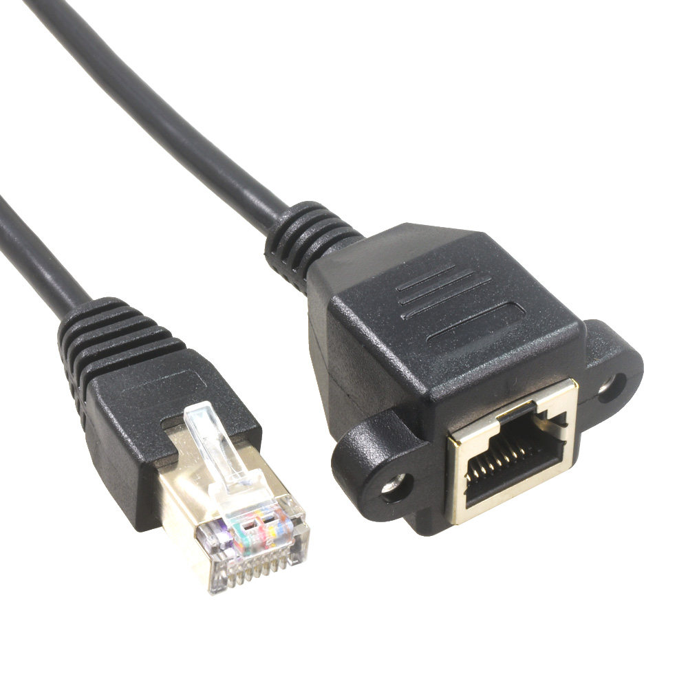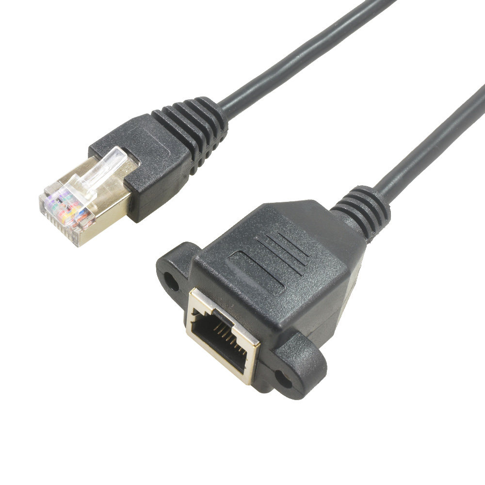 Fixable with ear Internet line extension cord rj45 extension cord with screw hole RJ45 male upper and lower left and right bends