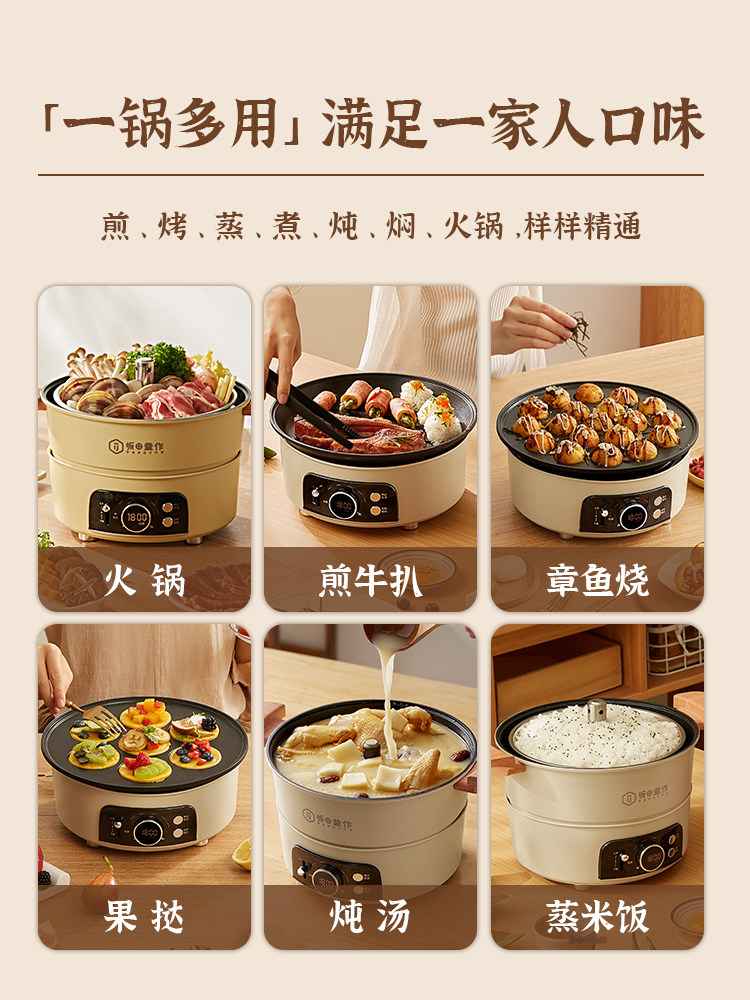 Sakata kettle automatic lifting electric hot pot Household multi-function frying pan baking plate one-piece two-piece barbecue electric hot pot