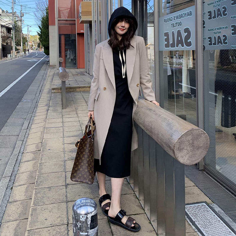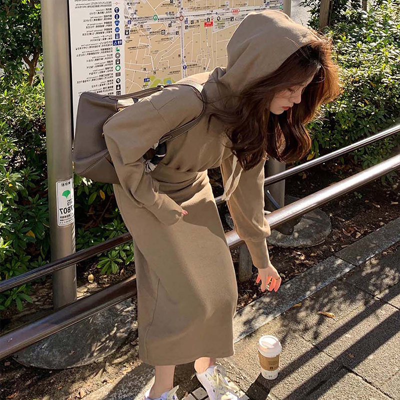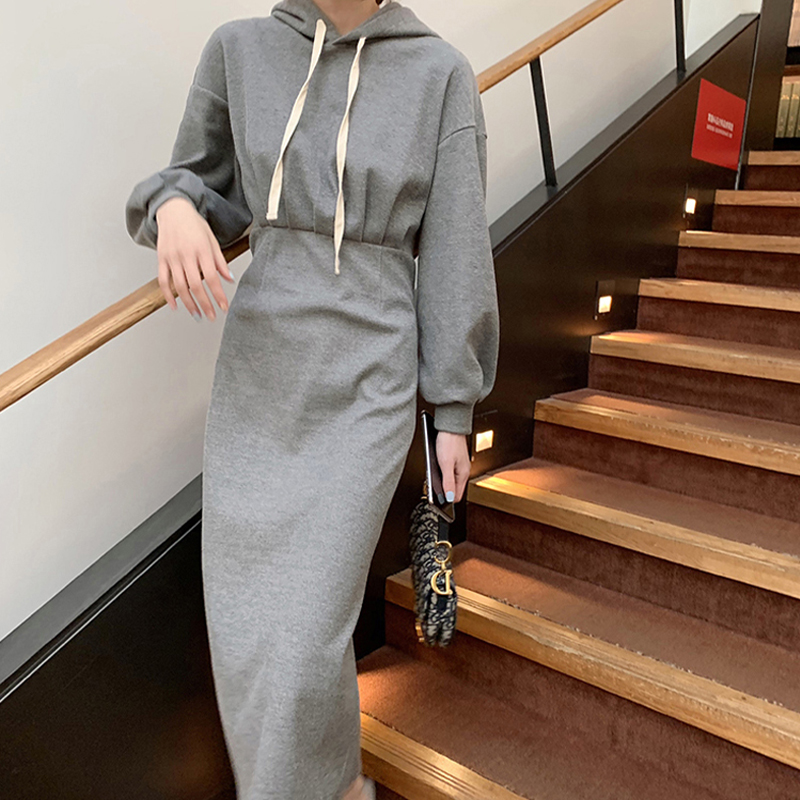 A long dress with coat girl in autumn and winter knitting dress over knee temperament with a new dress