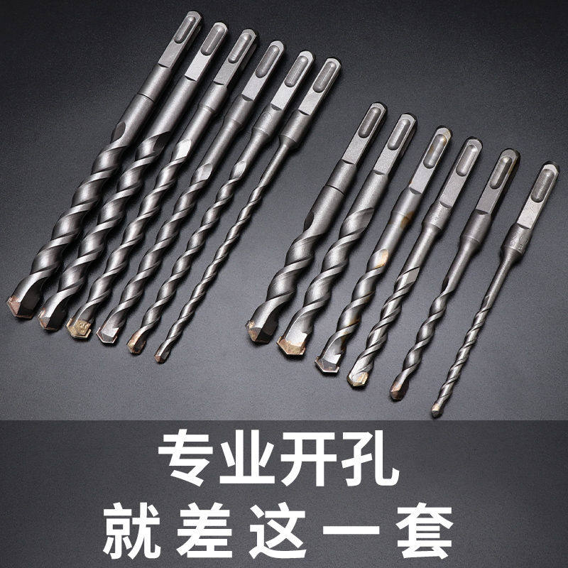 Lengthened shock electric hammer drill bit 6mm square handle 4 pit concrete construction wearing wall cement wall punching drill bit 8mm